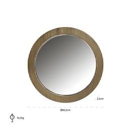 Lustro Ironville 86 to okrągłe lustro wykonane z grubej płyty MDF wykończonej mosiądzem. Lustro ma średnicę 86,5 cm i jest wyposażone w czarno złoty, metalowy ramnik, który dodaje mu elegancji. Lustro jest wyposażone w bezpieczne zamocowanie, które pozwala na łatwe i szybkie przytwierdzenie do każdej powierzchni.