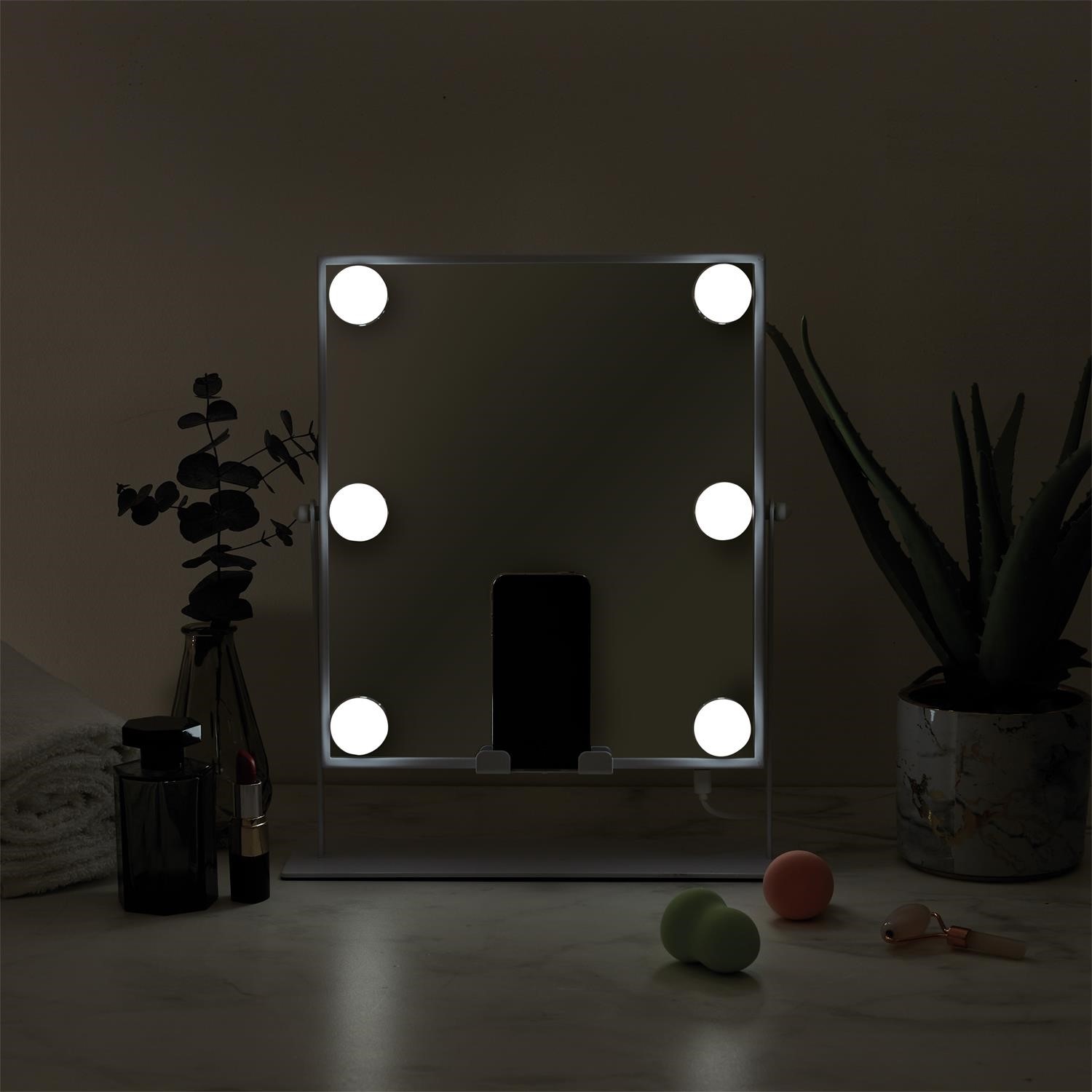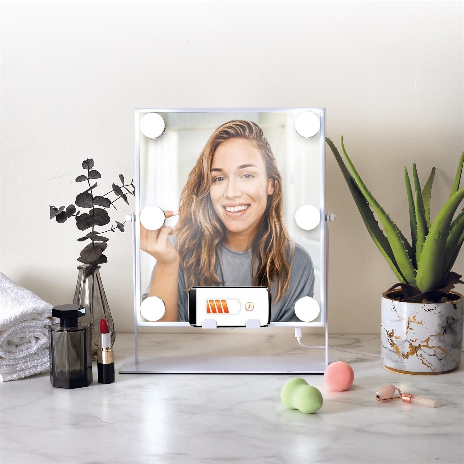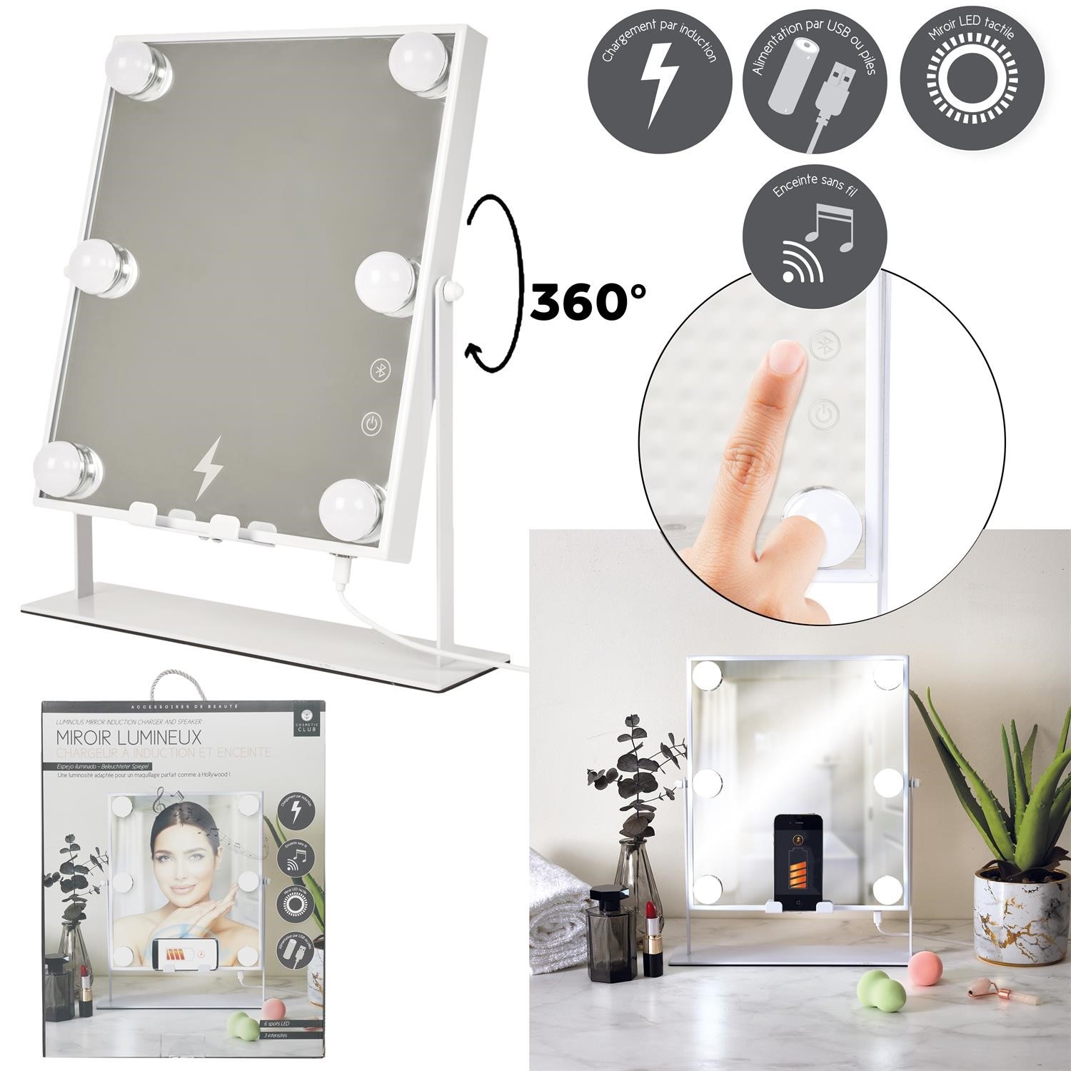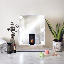 Lustro LED Z GŁOŚNIKIEM I ŁADOWARKĄ to nowoczesny i wielofunkcyjny dodatek do każdego wnętrza. Wyposażone w sześć żarówek LED, zapewnia doskonałe oświetlenie twarzy, co jest idealne do codziennego makijażu. Jego elegancka, biała rama wykonana z metalu proszkowanego nadaje mu styl skandynawski, który pasuje do różnych aranżacji wnętrz. Lustro posiada wbudowany głośnik Bluetooth, który umożliwia odtwarzanie ulubionej muzyki bezpośrednio z telefonu. Dodatkowo, wbudowana ładowarka indukcyjna pozwala na wygodne ładowanie smartfona bez użycia kabli. Lustro można obracać o 360 stopni, co umożliwia ustawienie go pod dowolnym kątem, dostosowując do indywidualnych potrzeb. To lustro jest nie tylko praktyczne, ale również estetyczne. Jego nowoczesny design i funkcjonalność sprawiają, że jest idealnym wyborem dla osób ceniących sobie wygodę i styl. Dzięki solidnej konstrukcji i dbałości o szczegóły, lustro LED Z GŁOŚNIKIEM I ŁADOWARKĄ będzie służyć przez wiele lat.