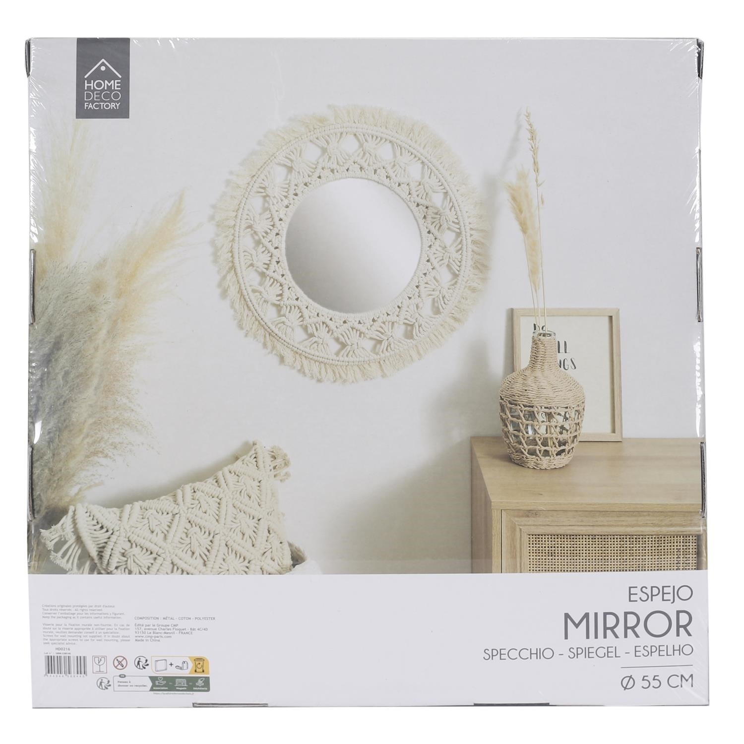 Lustro MACRAMA o średnicy 55 cm to idealny dodatek do wnętrz w stylu boho. Jego okrągła forma i pleciona rama z bawełnianych sznurków nadają mu wyjątkowy charakter. Beżowy odcień ramy wprowadza delikatność i subtelność, doskonale komponując się z różnymi aranżacjami wnętrz. Lustro wykonane jest z wysokiej jakości szkła, co zapewnia jego trwałość i estetyczny wygląd. Dzięki praktycznej dziurce do zawieszenia, montaż lustra jest prosty i szybki. Warto jednak pamiętać, że zestaw montażowy nie jest dołączony, więc należy przygotować odpowiednie narzędzia. Lustro Macrama nie tylko spełnia funkcję praktyczną, ale również dekoracyjną, dodając wnętrzu uroku i wyrazistości. Idealnie sprawdzi się w sypialni, salonie czy przedpokoju, wprowadzając boho akcent i tworząc przytulną atmosferę. To lustro to nie tylko praktyczny przedmiot codziennego użytku, ale także stylowy element dekoracyjny, który z pewnością przyciągnie wzrok i doda wnętrzu wyjątkowego charakteru.