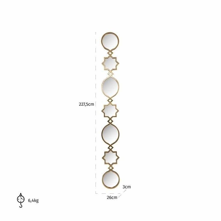 Lustro ścienne Babice to niezwykła dekoracja, która przyciąga uwagę swoją oryginalnością i wyrafinowaniem. Zestaw luster w złotej ramie tworzy harmonijną kompozycję, wprowadzając do pomieszczenia odrobinę glamour. To nie tylko praktyczne rozwiązanie, ale także dzieło sztuki, które podkreśli wyjątkowy charakter każdego wnętrza.
