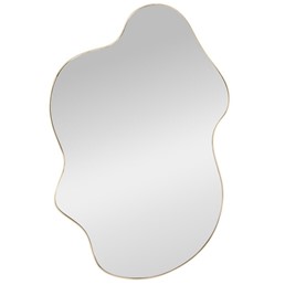 Lustro ESSENT to elegancki dodatek do każdego wnętrza. Wykonane z wysokiej jakości materiałów, takich jak malowane żelazo oraz MDF, wprowadza subtelną elegancję dzięki swojej złotej ramie o wymiarach 90x56 cm.
