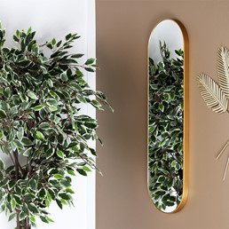 Lustro Wiszące CAMOMILLE Złote od Intesi to idealny dodatek, który doda elegancji i uroku do Twojej łazienki lub sypialni. Jego plastikowa rama w złotym kolorze i smukły owalny kształt sprawią, że przestrzeń nabierze lekkości. To piękne lustro o wymiarach 100 x 30 x 3 cm wykonane jest z wysokiej jakości tworzywa sztucznego i szkła. Pasuje zarówno do stylu boho, jak i glamour. Zawieś je na pustej ścianie, a Twoje wnętrze zyska nowy, wyrafinowany akcent .