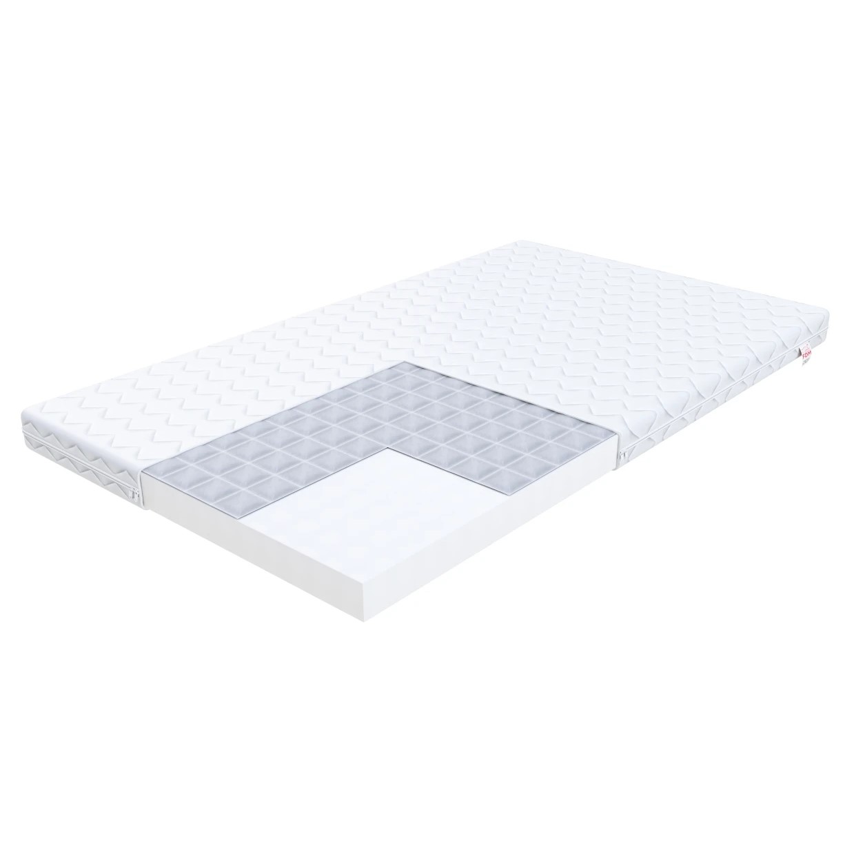 Materac BABY CARE to model dedykowany dla najmłodszych, już od pierwszych dni życia. W tym modelu rdzeń materaca stanowi pianka poliuretanowa T25. Jest to materiał, który nie odkształca się, dzięki czemu materac jest bardzo wygodny i gwarantuje komfort snu. Wysoka jakość pianki zapewnia bardzo dobre podparcie dla kręgosłupa. Jego twardość została tak dobrana, aby zapewnić swobodną zmianę pozycji. Zastosowana warstwa naturalnej łuski gryczanej ma właściwości prozdrowotne, zapobiega odleżynom i wadom kręgosłupa.