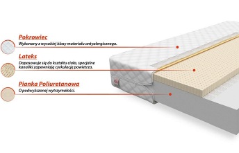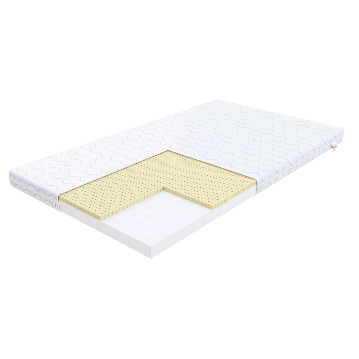 Model BABY CLASSIC powstał z myślą, by wspierać prawidłowy rozwój dziecka podczas snu. Bazę materaca stanowi pianka poliuretanowa T25, o podwyższonej wytrzymałości i dobrej przepuszczalności powietrza. Zapewnia świetną izolację termiczną. Materac został wzbogacony o warstwę perforowanego lateksu, który odpowiednio dopasowuje się do kształtu ciała i zapewnia odpowiednią wentylację podczas snu. Zastosowany lateks ma wysokie właściwości antyseptyczne, dzięki czemu chroni przed rozwojem pleśni i mikroorganizmów.