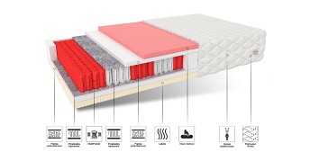 Model COMFORT MAX bazuje na wkładzie multipocketowym. Oznacza to, że posiada znacząco więcej sprężyn na 1 mkw. niż wkład pocketowy. Każda z nich jest umieszczona w osobnym woreczku z tkaniny, dzięki czemu ich praca jest niezależna od innych sprężyn. Oznacza to, że w przypadku korzystania przez dwie osoby, jedna nie odczuwa wiercenia się drugiej podczas snu. Dla jeszcze większego komfortu model ten posiada warstwę pianki lateksowej, a z drugiej strony piankę termoplastyczną VISCO.