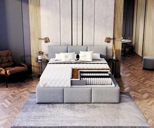- Sprężyny kieszeniowe, które swoim kształtem dopasowują się do sylwetki śpiącego, dając doskonałe podparcie pod kręgosłup.