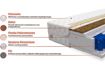 - Sprężyny kieszeniowe, które swoim kształtem dopasowują się do sylwetki śpiącego, dając doskonałe podparcie pod kręgosłup.
