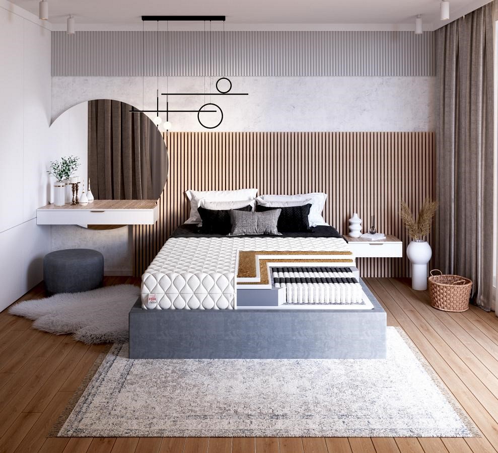 Materac FAMILY MAX DOUBLE to idealne rozwiązanie dla jednej lub dwóch osób. Rdzeniem materaca jest rdzeń pocketowy (kieszonkowy). Sprężyny pocketowe zostały wykonane w technologii NanoHARD, podwójnie hartowany drut znacznie przedłuża ich żywotność. Dzięki zastosowaniu 7-stref o zróżnicowanej twardości materac zapewnia ergonomiczną pozycję ciała podczas wypoczynku. Niezależna praca sprężyn, eliminuje efekt wyginania się dużej powierzchni materaca przy nacisku na jego małą powierzchnię. Dzięki czemu wszelkiego rodzaju obracanie, czy wiercenie nie będzie odczuwalne dla drugiej osoby.
