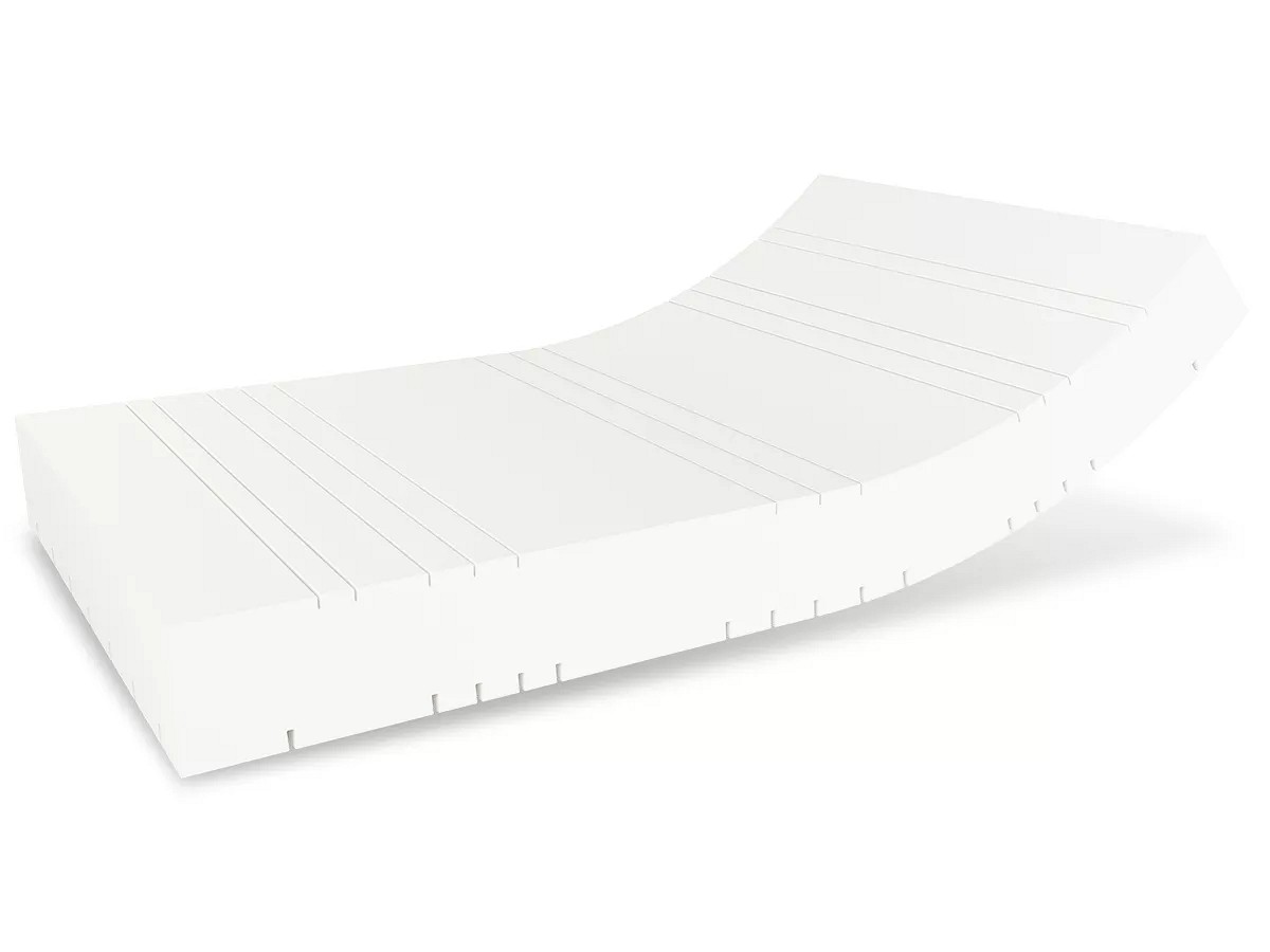 GOYA MAX to dwustronny materac wysokiej jakości. Dzięki zastosowaniu szeregu wzdłużnych oraz poprzecznych nacięć materac podzielono na 7-stref. Uzyskano dzięki temu znaczne zwiększenie plastyczności, zapewniając doskonałe podparcie kręgosłupa. Pianka HR posiada niejednolitą strukturę komórkową, która uzyskuje lepsze parametry podtrzymywania ciała, komfortu oraz sprężystości. Zapewnia idealne dopasowanie materaca do kształtu ciała, pozostając przy tym niezwykle lekką. Materiał ten wyróżnia się niezwykłą trwałością i odpornością na odkształcenia. Porowata struktura, zapewnia doskonałą cyrkulację powietrza, co uniemożliwia rozwój grzybów i pleśni. Płaszczyzna, cięta konturowo w formie kraty, wyróżnia się właściwościami ortopedycznymi.