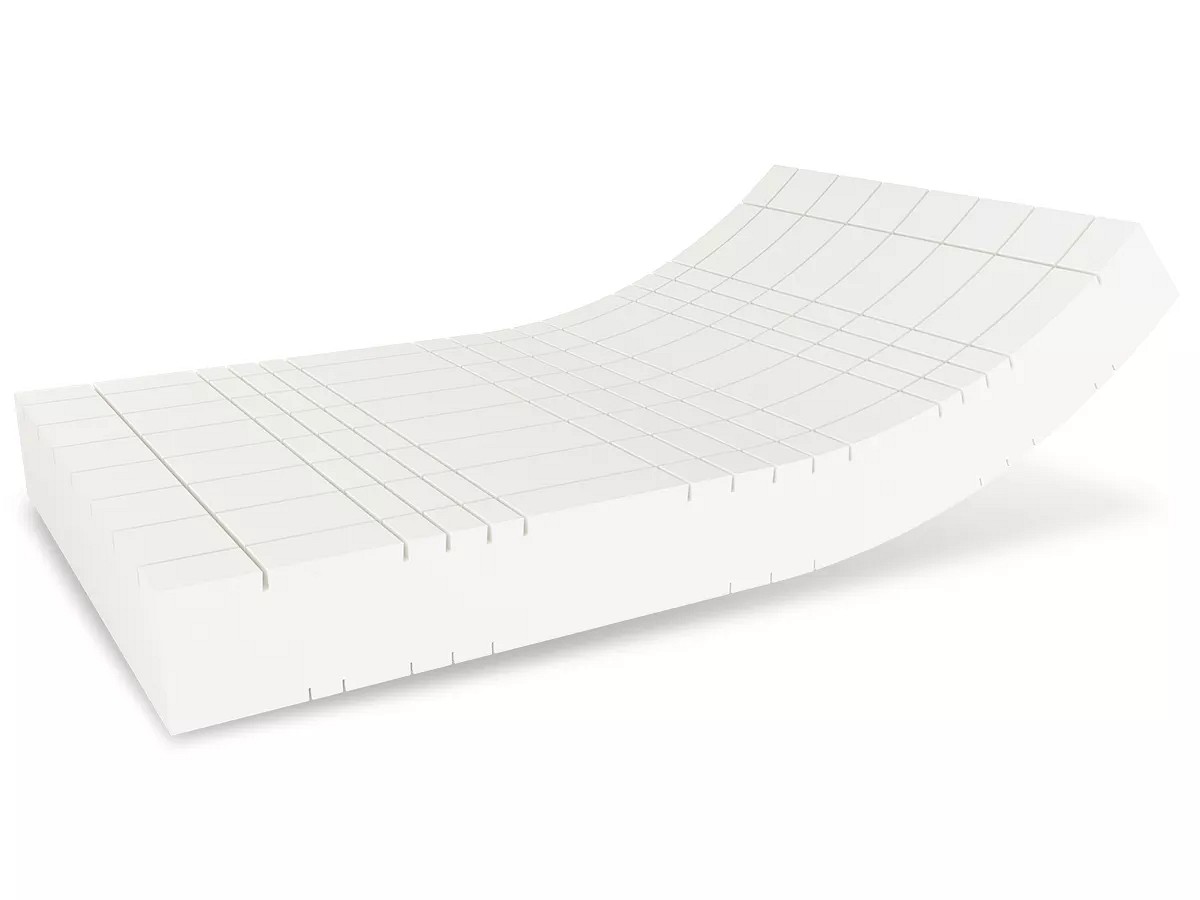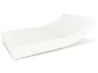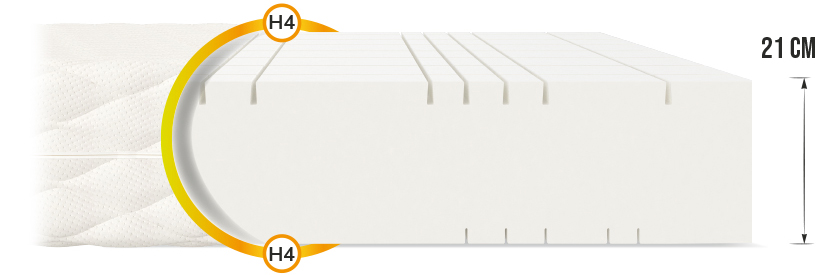 GOYA MAX to dwustronny materac wysokiej jakości. Dzięki zastosowaniu szeregu wzdłużnych oraz poprzecznych nacięć materac podzielono na 7-stref. Uzyskano dzięki temu znaczne zwiększenie plastyczności, zapewniając doskonałe podparcie kręgosłupa. Pianka HR posiada niejednolitą strukturę komórkową, która uzyskuje lepsze parametry podtrzymywania ciała, komfortu oraz sprężystości. Zapewnia idealne dopasowanie materaca do kształtu ciała, pozostając przy tym niezwykle lekką. Materiał ten wyróżnia się niezwykłą trwałością i odpornością na odkształcenia. Porowata struktura, zapewnia doskonałą cyrkulację powietrza, co uniemożliwia rozwój grzybów i pleśni. Płaszczyzna, cięta konturowo w formie kraty, wyróżnia się właściwościami ortopedycznymi.