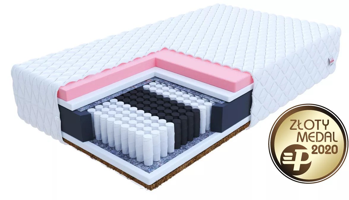 IVREA to materac, który w standardzie oferuje więcej. Jest to typ materaca hybrydowego czyli zbudowanego z kilku, różnych warstw. Baza oparta na sprężynach multipocketowych dzieli go na 7 stref podparcia sylwetki, dzięki czemu każdy element Twojego ciała będzie odczuwać wygodę podczas snu. Dodatkowo zapewnia to redukcję dyskomfortu wynikającego z ruchów drugiej osoby i zapewnia nieprzerwany sen. Sprężyny te są wykonane w technologii NanoHard gwarantującej wytrzymałość i wydłużoną żywotność. Druga warstwa to wytrzymała i sprężysta pianka poliuretanowa, zapewniająca dobrą amortyzację sylwetki. Twoje ciało idealnie dopasuje się do podłoża, a ranem obudzisz się rześki i wypoczęty. Z kolei pianka termoplastyczna VISCO zapewnia niezrównany komfort i wygodę dzięki pamięci kształtu, idealnie odwzorowując ciało użytkownika i wracając później do pierwotnego stanu. Aby zapewnić dodatkową przewiewność, użyto matę kokosową, która także jako surowiec naturalny lekko utwardza całą konstrukcję.