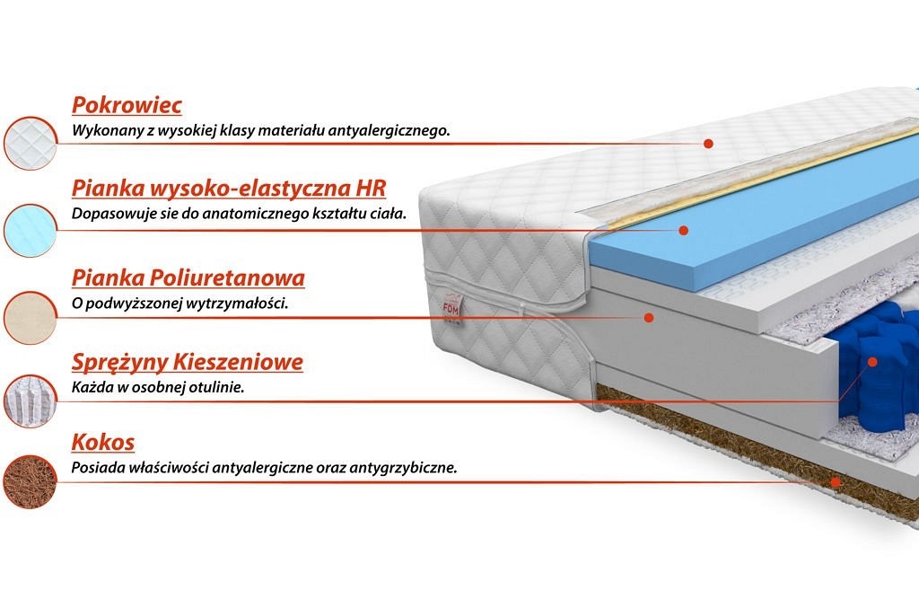 LAVAL to dwustronny materac, którego rdzeniem jest formatka pocketowa (kieszonkowa). Sprężyny pocketowe zostały wykonane w technologii NanoHARD, podwójnie hartowany drut znacznie przedłuża ich żywotność. Dzięki zastosowaniu 7-stref o zróżnicowanej twardości materac zapewnia ergonomiczną pozycję ciała podczas wypoczynku. Niezależna praca sprężyn, eliminuje efekt wyginania się dużej powierzchni materaca przy nacisku na jego małą powierzchnię. Dzięki czemu wszelkiego rodzaju obracanie, czy wiercenie nie będzie odczuwalne dla drugiej osoby. Wkład kieszeniowy otacza pianka poliuretanowa T25, odporna na odkształcenia.