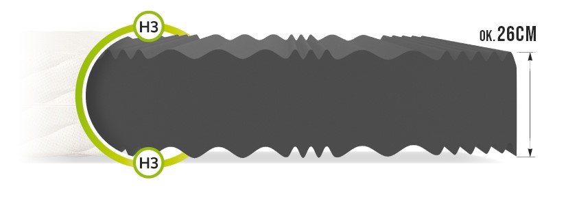 Model ten ujmuje swoją prostotą. LIVIA MAX PLUS to dwustronnie ryflowany materac wysokiej jakości. Został stworzony z niezwykle trwałej, wysokoelastycznej pianki HR. Właściwości tej pianki zapewniają doskonałą cyrkulację powietrza, dzięki specjalnym kanalikom. Pofalowana powierzchnia i miliony pęcherzyków powodują idealne dopasowanie się materaca do kształtu ciała, gwarantując przy tym komfort snu. Odporna na odkształcenia pianka zapewnia świetne podparcie dla całego ciała.