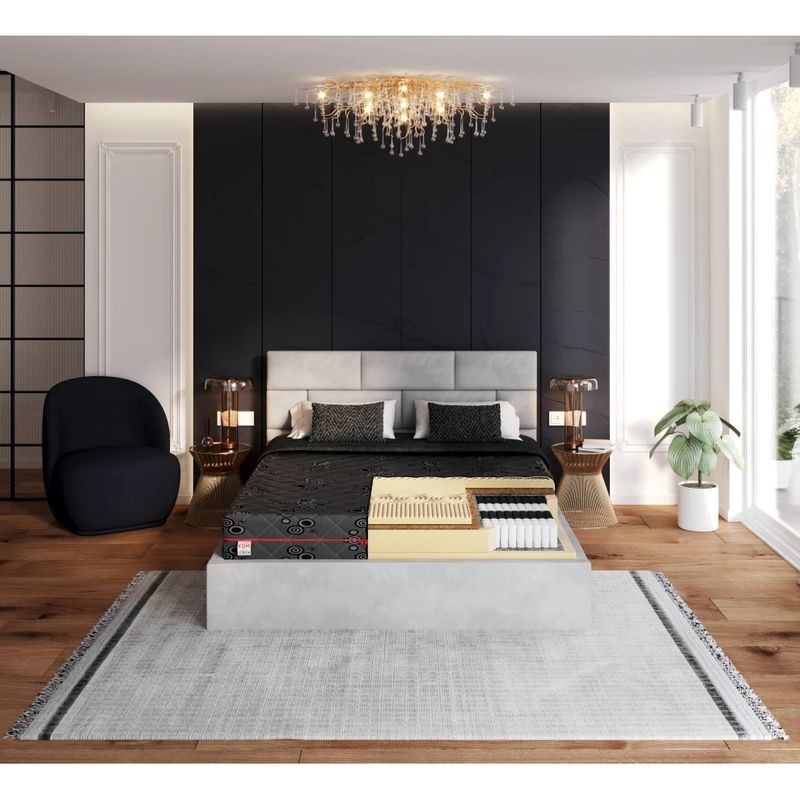 Materac kieszeniowy NEON to model, który łączy w sobie nowoczesne technologie i klasyczne rozwiązania, zapewniając zdrowy i komfortowy sen. Jego sercem jest wkład kieszeniowy, w którym każda sprężyna pracuje niezależnie, dopasowując się do kształtu ciała. Dzięki podziałowi na 7 stref podparcia kręgosłup zyskuje naturalne ułożenie, a mięśnie mogą się w pełni rozluźnić. Po obu stronach zastosowano różne warstwy pianek – poliuretanową dla sprężystości oraz wysokoelastyczną HR dla lepszej cyrkulacji powietrza. Całość uzupełnia naturalna warstwa kokosa, która zwiększa trwałość, zapewnia sztywność i działa antyalergicznie. Pikowany pokrowiec JACQUARD wykonano z hipoalergicznych materiałów pierwszego gatunku, co podnosi komfort i wydłuża żywotność materaca. NEON to model średnio twardy (H3), idealny dla osób szukających balansu między elastycznością a stabilnym podparciem.