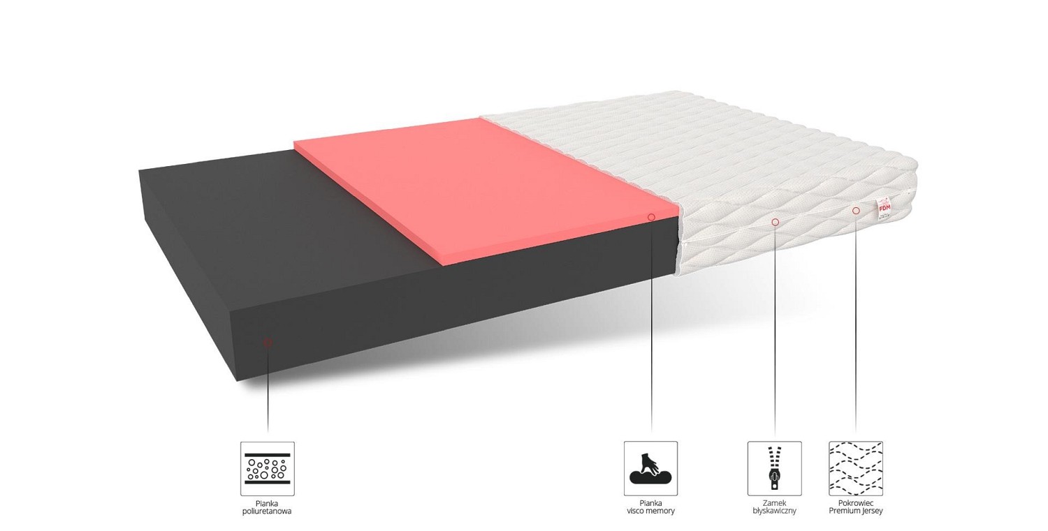 ORSA to materac z bloku pianki Resilience Black, która ma niejednolitą strukturę komórkową. Zwiększa ona elastyczność i wytrzymałość materaca oraz pozytywnie wpływa na jego wentylację. Zastosowana pianka doskonale podpiera ciało na jego całej długości. Dla poprawienia ogólnego komfortu użytkowania dodano piankę VISCO z funkcją pamięci kształtu. Warstwa ta pod wpływem nacisku i ciepła pozwala na naturalne ułożenie się kręgosłupa podczas snu.