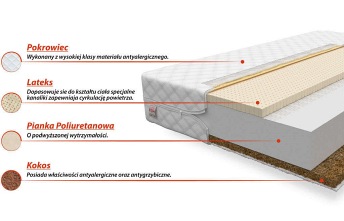 - Warstwa naturalnego kokosa, który jest przewiewny i posiada właściwości antyalergiczne.