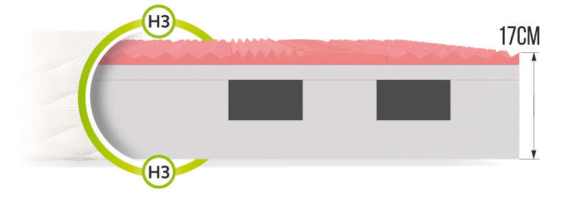 Model ten powstał z kombinacji kilku warstw pianek syntetycznych, wykorzystując ich unikatowe cechy. Materac ROVIGO powstał z połączenia strefowej pianki wysokoelastycznej HR oraz pianki poliuretanowej T25, o podwyższonej wytrzymałości. Dzięki takiemu zestawieniu materac cechuje wyjątkowa odporność na odkształcenia oraz doskonałe dopasowanie do sylwetki użytkownika. Wysoka jakość pianek zapewnia bardzo dobre podparcie dla kręgosłupa, jak i całego ciała.