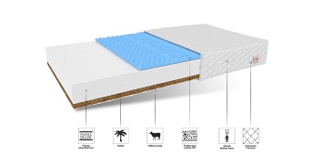 Bazę modelu SORRENTO stanowi wysoko gatunkowa pianka poliuretanowa T25, o podwyższonej wytrzymałości. Z jednej strony dodano warstwę kokosu, która usztywnia materac oraz chroni go przed wnikaniem drobnoustrojów i roztoczy. Druga strona została wyposażona w profilowaną 7-strefową piankę HR. Materiał o zwiększonej sztywności i odporności, nadający właściwą sprężystość. Zastosowane surowce sprawiają, że materac posiada zwiększoną zdolność przepuszczalności powietrza