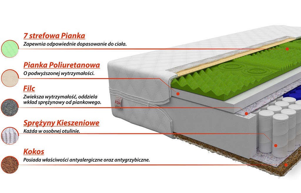Najpopularniejszymi modelami są materace kieszeniowe, które dzielą materac na różne strefy dostosowane do poszczególnych partii ciała. Duża część klientów wybiera materace piankowe, które idealnie przystosowują się do kształtu naszego ciała, ale nie odkształcają powierzchni materaca. Dzięki temu materac może służyć nam na długie lata. Dużym ułatwieniem jest materac dwustronny i dzieli się na różne strefy twardości. Bardziej twarda strona często wzbogacona jest o wkład kokosowy, dzięki czemu materac zachowuje właściwości antygrzybiczne i antyalergiczne. Podnosi on, również komfort snu zapewniając odpowiednią wentylację, zwłaszcza w letnie noce. Strona miękka świetnie otula nasze ciało w zimowe wieczory.