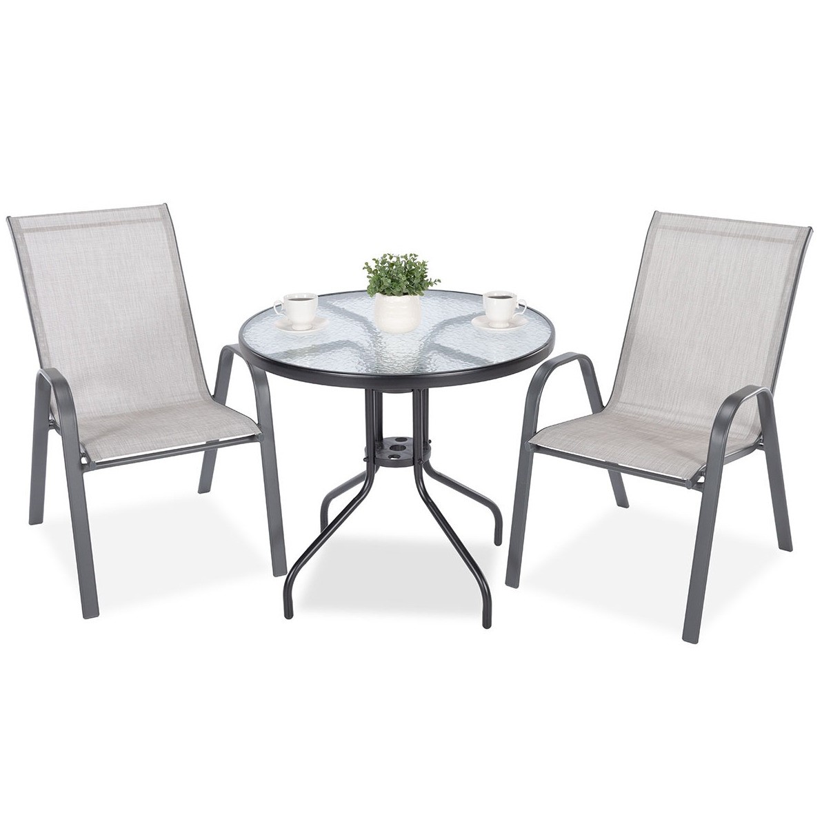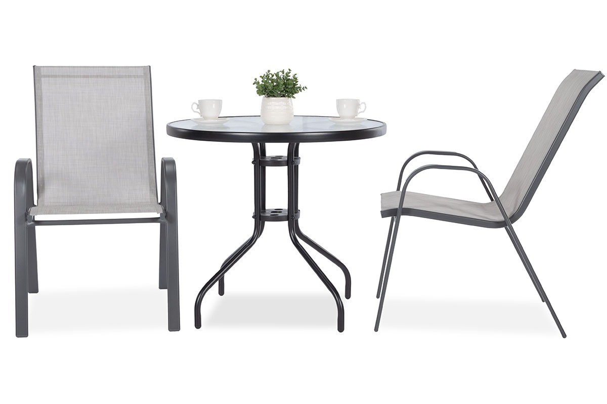 Zestaw ogrodowy 2-osobowy z okrągłym stołem i dwoma krzesłami to idealne rozwiązanie na balkon, taras lub mały ogród. Składa się z kompaktowego stolika i wygodnych krzeseł, które zapewniają komfort podczas wypoczynku na świeżym powietrzu. Okrągły blat stołu sprzyja kameralnym spotkaniom przy kawie lub posiłku. Konstrukcja wykonana jest z materiałów odpornych na warunki atmosferyczne, co gwarantuje trwałość i łatwość w utrzymaniu czystości. Zestaw charakteryzuje się lekką formą, dzięki czemu łatwo go przestawić lub przechować. Stylowy design świetnie komponuje się zarówno z nowoczesną, jak i klasyczną aranżacją przestrzeni zewnętrznej.