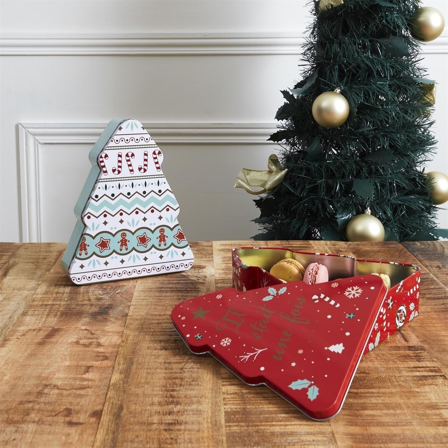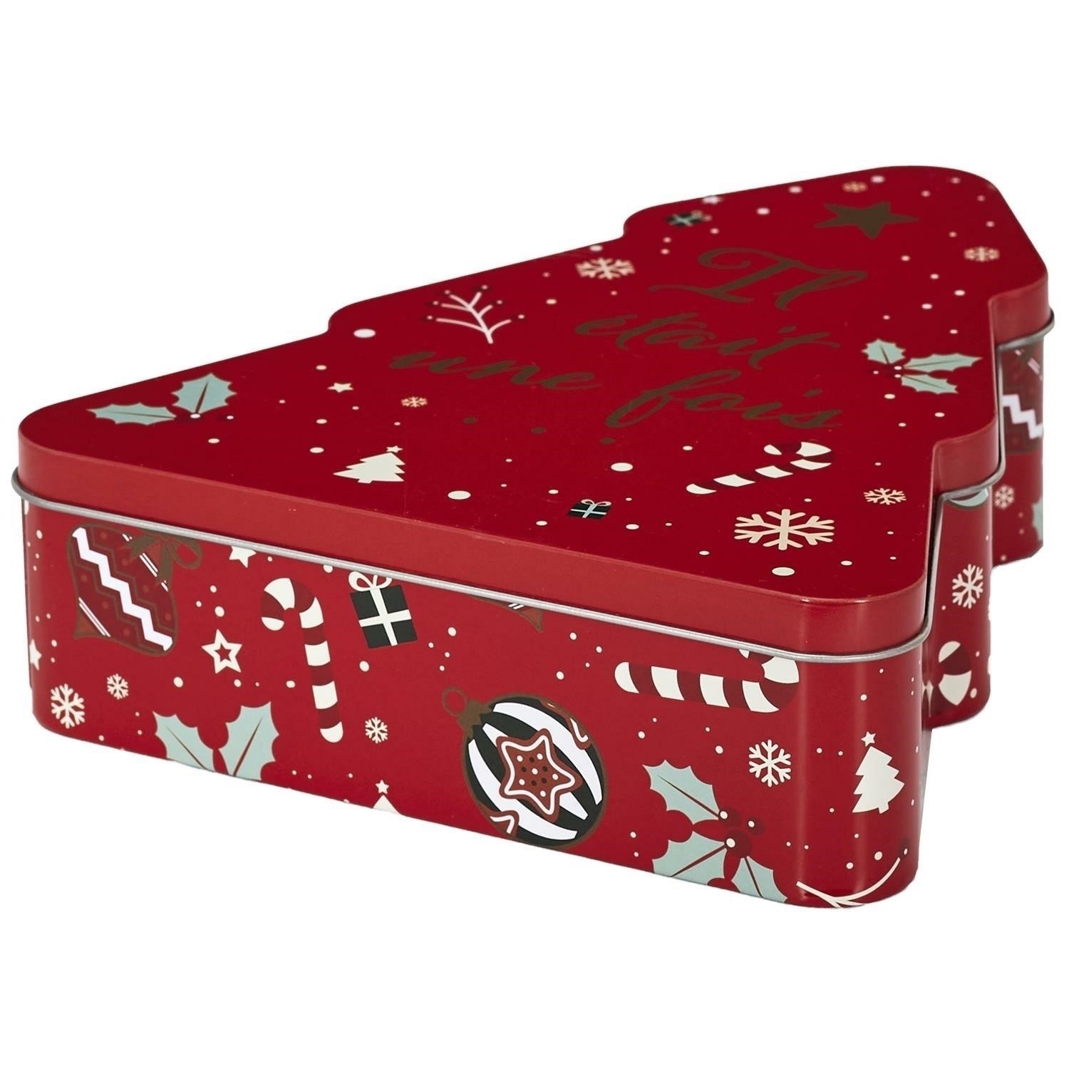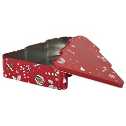 Czerwone metalowe pudełko z motywem świątecznej choinki to doskonały sposób na przechowywanie drobiazgów lub słodyczy w okresie świątecznym. Może również służyć jako eleganckie opakowanie na prezent dla bliskiej osoby.