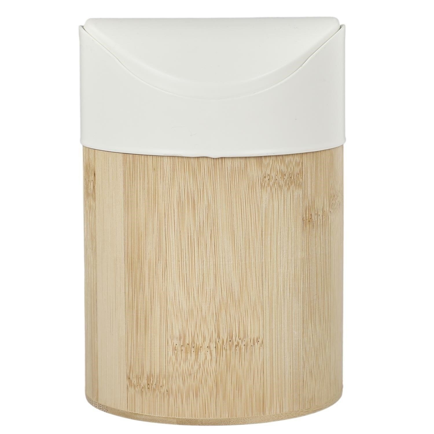 Mini kosz na śmieci z bambusowym wykończeniem to funkcjonalne i stylowe rozwiązanie na drobne odpadki. Kompaktowy rozmiar sprawia, że zmieści się nawet w niewielkich przestrzeniach. Naturalne akcenty nadają mu modnego wyglądu.