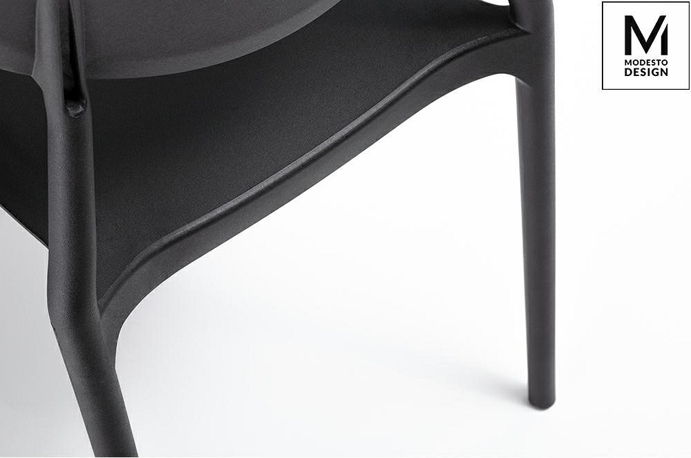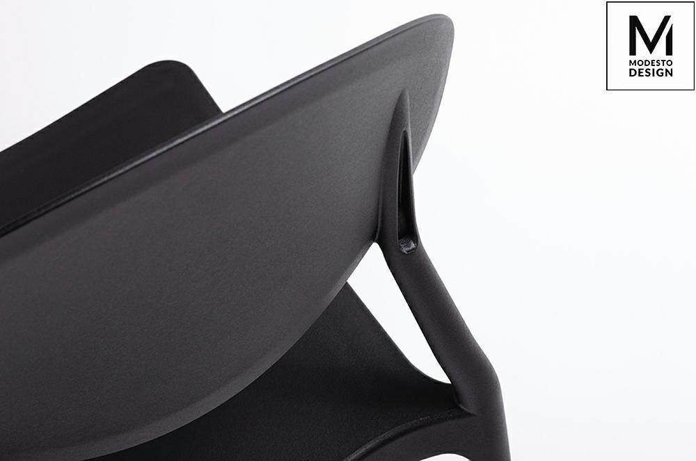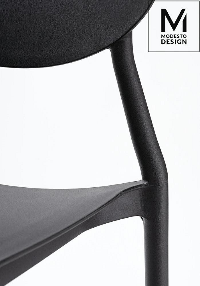 Krzesło FLEX marki MODESTO DESIGN Flex wykonane zostało w całości z polipropylenu w kolorze czarnym, matowym. Doskonale sprawdzi się wewnątrz oraz na zewnątrz pomieszczeń. Krzesło można sztaplować(ustawiać jedno na drugim) co ułatwia przechowywanie. Waga netto 1 szt.: 4 kg Waga z opakowaniem: 5 kg Maksymalna ilość szt. w opakowaniu: 4 Sposób wysyłki: Paczka Wymiary paczki: 66 cm x 46 cm x 168 cm Produkt złożony: Tak