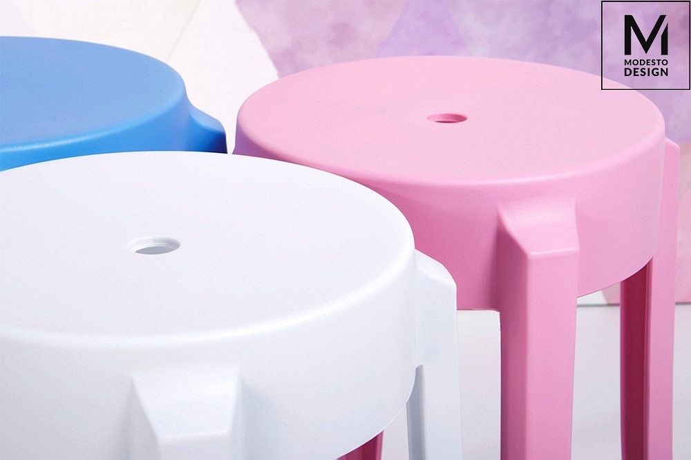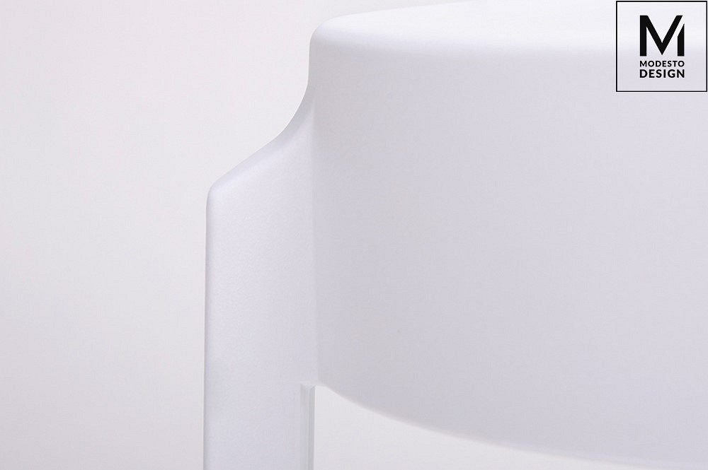 Stołek CALMAR 46 marki MODESTO DESIGN. Stołek w całości wykonany jest z polipropylenu w kolorze białym matowym. Waga netto 1 szt.: 1,70 kg Waga opakowania: 2,30 kg Maksymalna ilość szt. w opakowaniu: 4 Wymiary paczki: 37 cm x 37 cm x 56 cm Sposób wysyłki: Paczka Produkt złożony: Tak