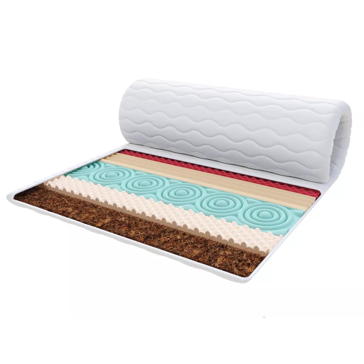 Nakładka FRUTTI Z KOKOSEM to połączenie komfortu i naturalnych materiałów, które zapewniają wygodny i higieniczny sen. Pierwsza warstwa z profilowanej pianki wysokoelastycznej HR 30 gwarantuje idealne dopasowanie do kształtu ciała dzięki podziałowi na siedem stref podparcia, co przekłada się na doskonałe wsparcie anatomiczne. Ta pianka cechuje się również większą wytrzymałością, będąc trwalsza od standardowych pianek poliuretanowych, a jej szybki powrót do pierwotnego kształtu zapewnia długotrwały komfort. Druga warstwa to wkład kokosowy, wykonany z włókien skorupy orzecha kokosowego z dodatkiem lateksu, co czyni go lekkim, przewiewnym i odpornym na wilgoć. Włókna kokosowe stanowią barierę dla roztoczy i mikroorganizmów, chroniąc przed alergenami i drażniącymi czynnikami. Materiał kokosowy zmniejsza także wydzielanie potu, co dodatkowo podnosi komfort użytkowania.