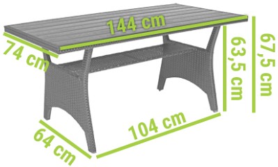 • Wysoki stół obiadowy o wymiarach: 144 x 74 x 67,5 cm,