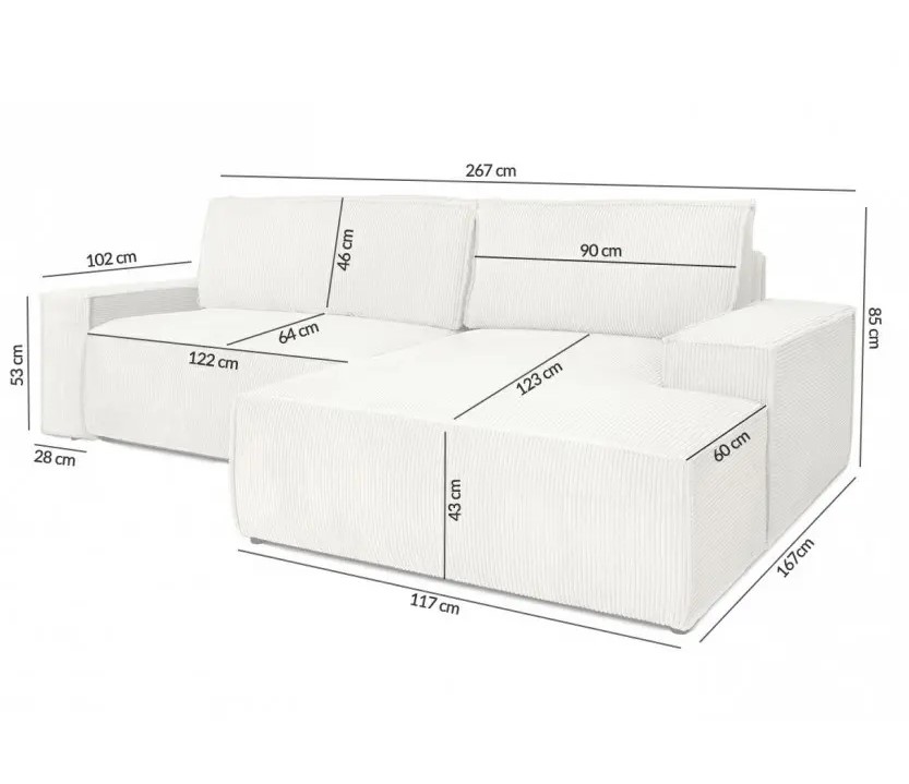 - Funkcjonalność spania: Możliwość rozłożenia narożnika w łóżko zapewnia dodatkowe miejsce do spania, idealne dla gości czy do codziennego użytku.