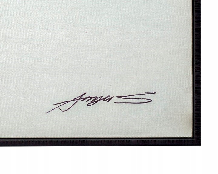 Smukła czarna, drewniana rama doskonale ukazuje nowoczesny charakter obrazu.