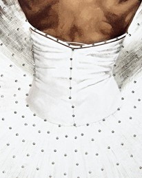 Obraz Ballerina 1 (100x120 cm) to stylowe dzieło sztuki przedstawiające baletnicę w białej sukni, która emanuje delikatnością i elegancją. Wysadzone cyrkoniami sukienka i kolczyki nadają mu subtelny blask, a czarno-złota rama doskonale podkreśla jego wyrafinowany charakter. To idealny wybór dla miłośników klasycznego malarstwa, który wprowadzi do wnętrza nutę wyrafinowanej elegancji i artystycznego piękna.