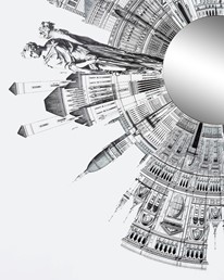 Obraz Crazy World (180x180 cm) to unikalna dekoracja ścienna, która wprowadza do wnętrza światowe ikony architektury i sztuki w artystycznym ujęciu. Centralna lustrzana kolumna tworzy spektakularny efekt wizualny, podkreślając nowoczesny charakter dzieła. Idealny wybór dla miłośników designu, poszukujących oryginalnych i wyrafinowanych akcentów dekoracyjnych.
