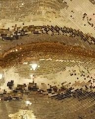 - Lśniące złote kafelki tworzą efekt przypominający dyskotekową kulę