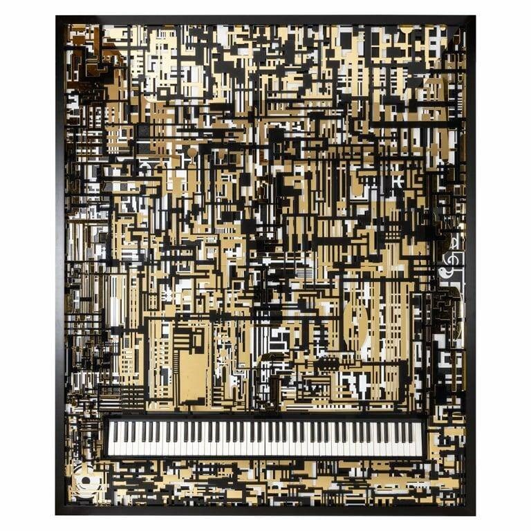 Złote akcenty na czarnym tle przypominają klawisze fortepianu, co sprawia, że obraz idealnie oddaje ducha muzyki i jest symbolem harmonii oraz piękna muzycznej melodii.