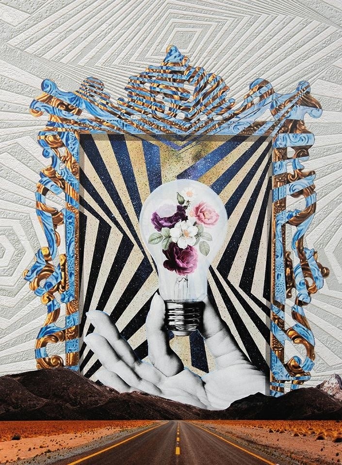 - Duża biała żarówka z kwiatami symbolizująca możliwości życia