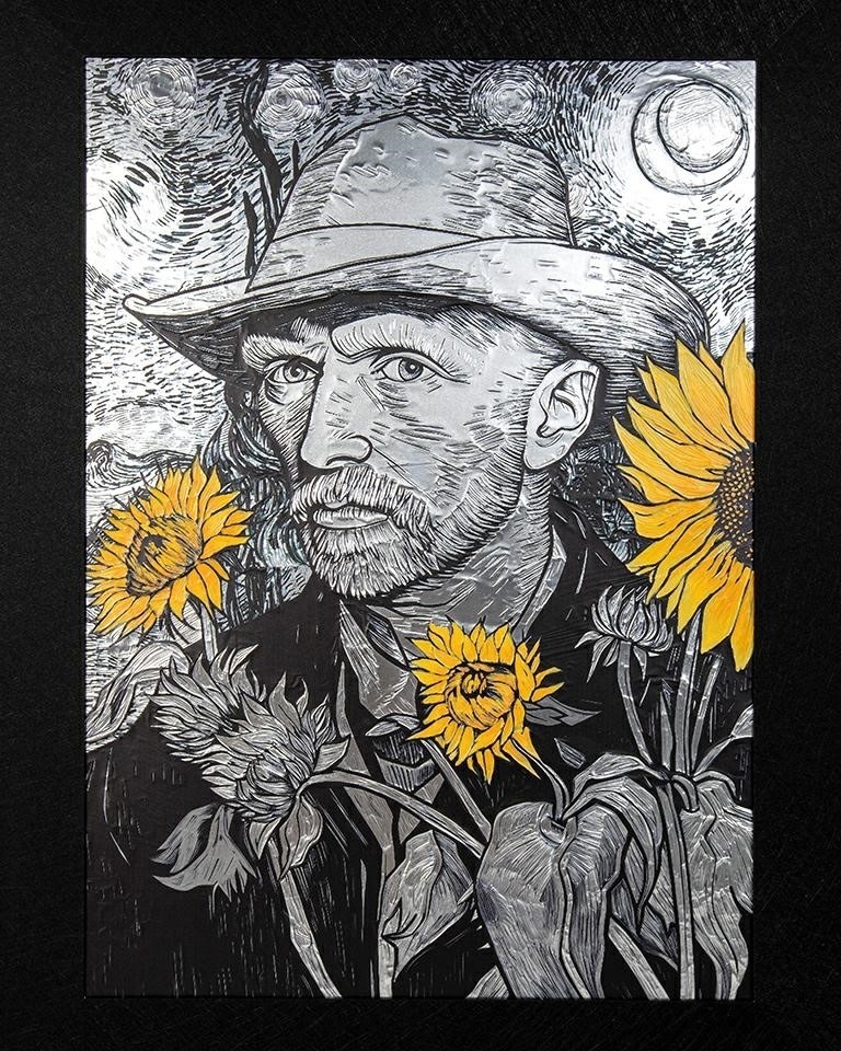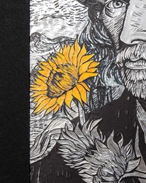 - Portret Vincenta van Gogha na tle pięknej natury i słoneczników