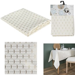 Obrus GEOMETRIC DORE Biały/Złoty o wymiarach 140x250 cm to idealny wybór na eleganckie przyjęcia i świąteczne kolacje. Jego prostokątny kształt sprawia, że doskonale pasuje do większości standardowych stołów, zapewniając schludne i stylowe wykończenie. Wykonany z wysokiej jakości poliestru, obrus jest trwały i łatwy w utrzymaniu czystości. Materiał ten jest odporny na plamy i zabrudzenia, co pozwala cieszyć się jego pięknym wyglądem przez długi czas. Biały kolor z delikatnymi, złotymi geometrycznymi wzorami dodaje mu subtelnej elegancji, która przyciąga wzrok i tworzy wyjątkową atmosferę. Obrus GEOMETRIC DORE nie tylko chroni stół przed uszkodzeniami, ale także dodaje wnętrzu luksusu i klasy. Jest łatwy do prasowania, co umożliwia szybkie przygotowanie stołu na każdą okazję. Dzięki swoim dużym wymiarom, zapewnia wystarczającą przestrzeń dla wszystkich naczyń i dekoracji, które chcesz umieścić na stole.