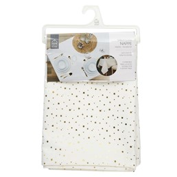 Obrus Star Dore wprowadza do wnętrza świąteczny nastrój dzięki złotym gwiazdom na białym tle. Jego imponujące wymiary sprawiają, że doskonale prezentuje się na dużych stołach, dodając im uroku i elegancji. Wykonany z dbałością o detale, stanowi piękną oprawę dla rodzinnych spotkań.