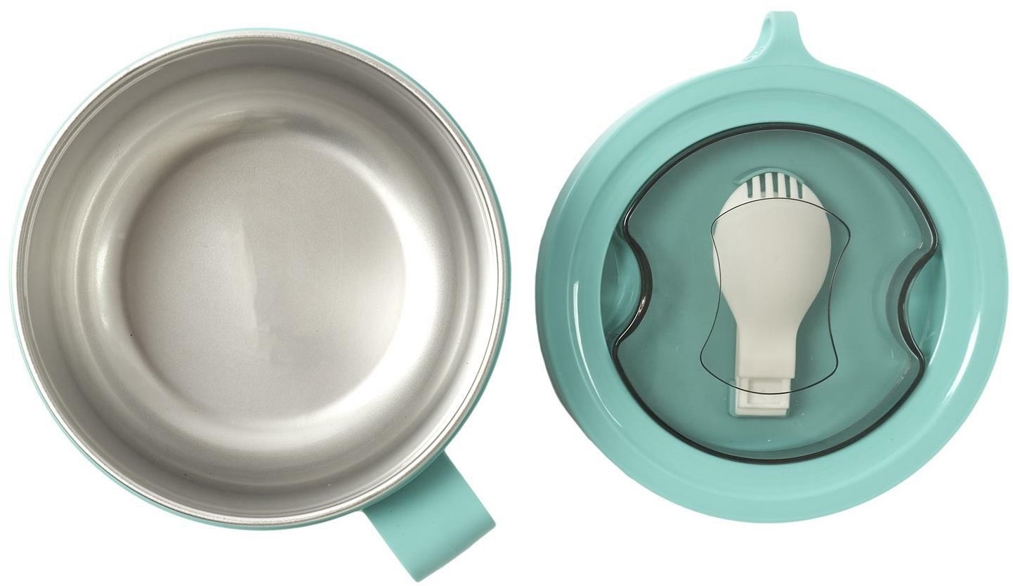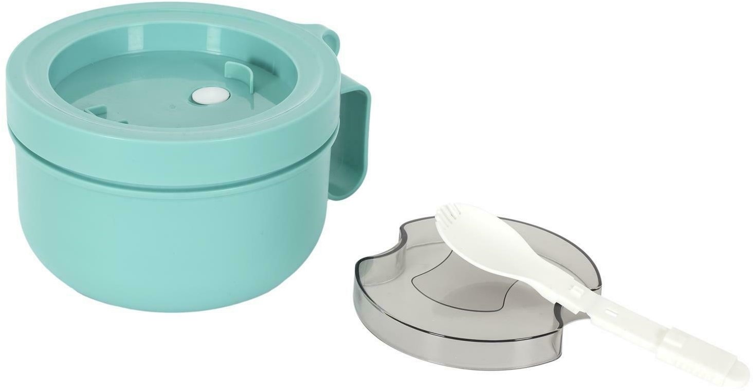 Lunch box wyposażony jest w składany widelec, co eliminuje potrzebę noszenia dodatkowych sztućców. Jego kompaktowa konstrukcja sprawia, że idealnie nadaje się do pracy, szkoły czy na wycieczki. Wnętrze lunch boxa jest metalowe, co pomaga utrzymać świeżość posiłków przez dłuższy czas.
