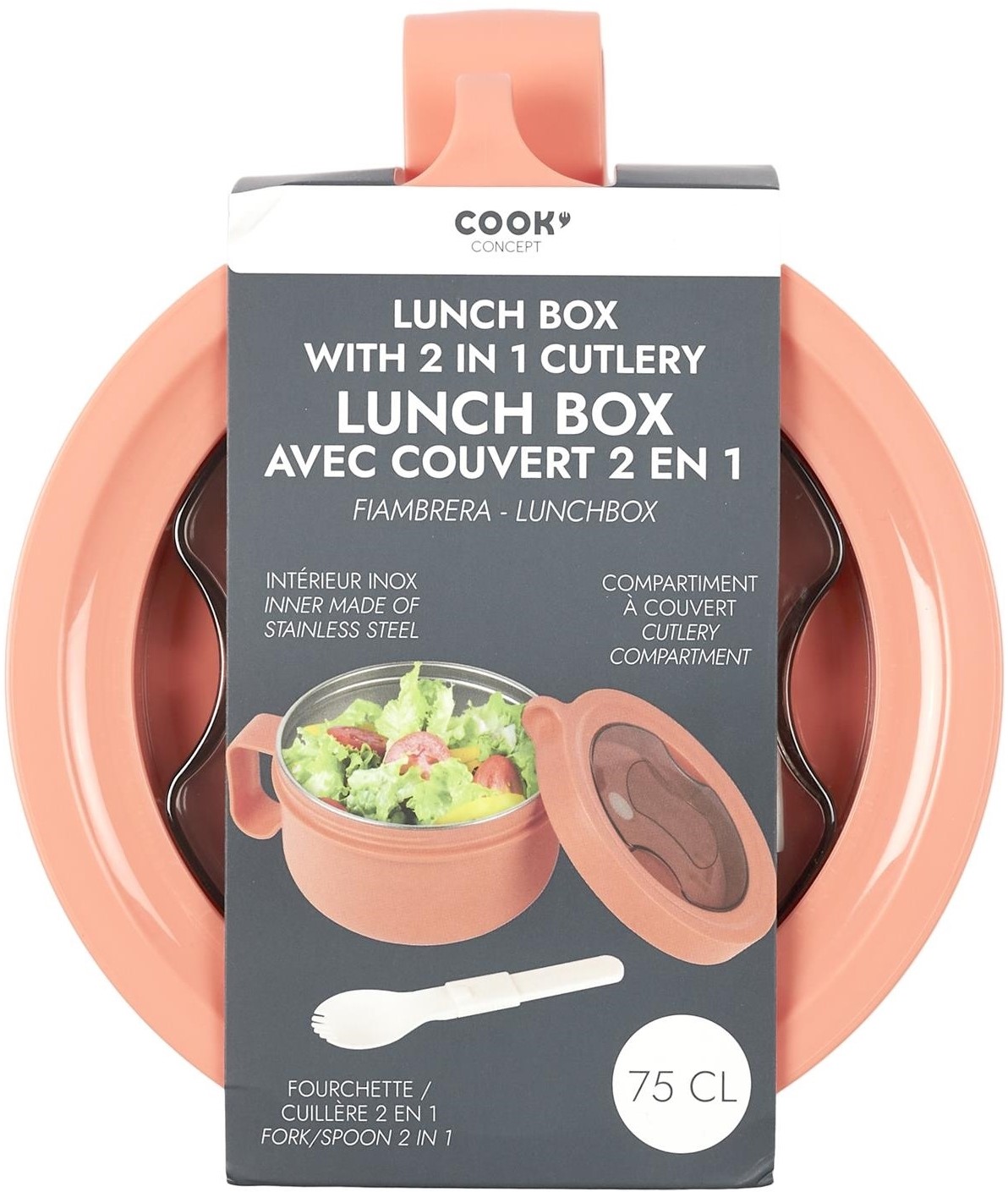 Lunch box wyposażony jest w składany widelec, co eliminuje potrzebę noszenia dodatkowych sztućców. Jego kompaktowa konstrukcja sprawia, że idealnie nadaje się do pracy, szkoły czy na wycieczki. Wnętrze lunch boxa jest metalowe, co pomaga utrzymać świeżość posiłków przez dłuższy czas.