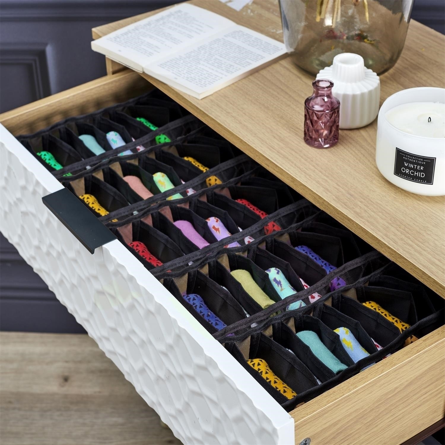 Organizer na podkoszulki to rozwiązanie dla osób ceniących porządek i organizację. Ułatwia dostęp do ubrań i pozwala zaoszczędzić miejsce w szafie. Czarny kolor sprawia, że wygląda estetycznie i pasuje do każdej garderoby.