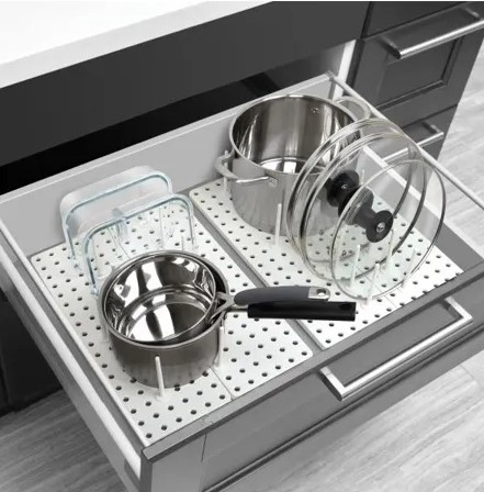 - Idealny do kuchennych szuflad, pomagając utrzymać porządek w garnkach, talerzach i innych akcesoriach