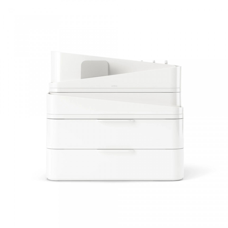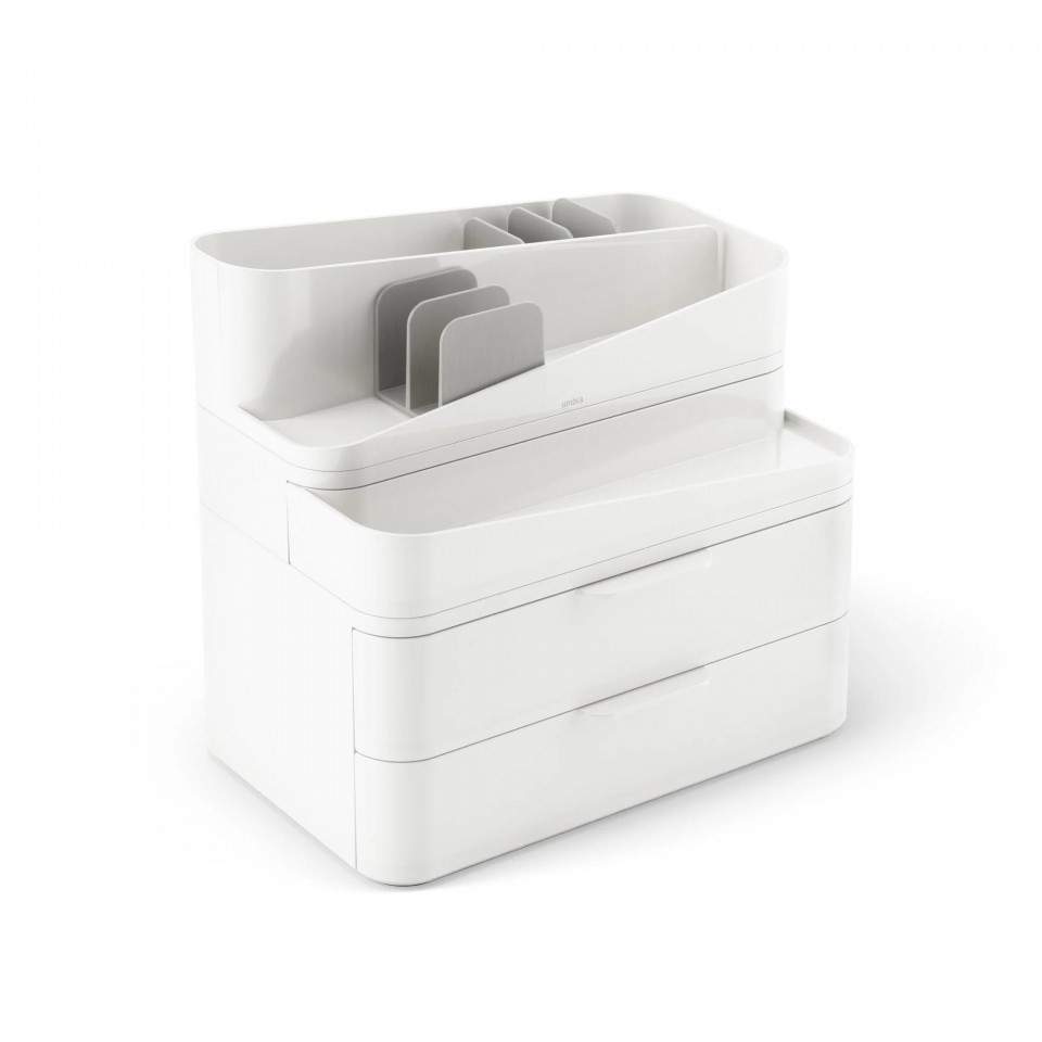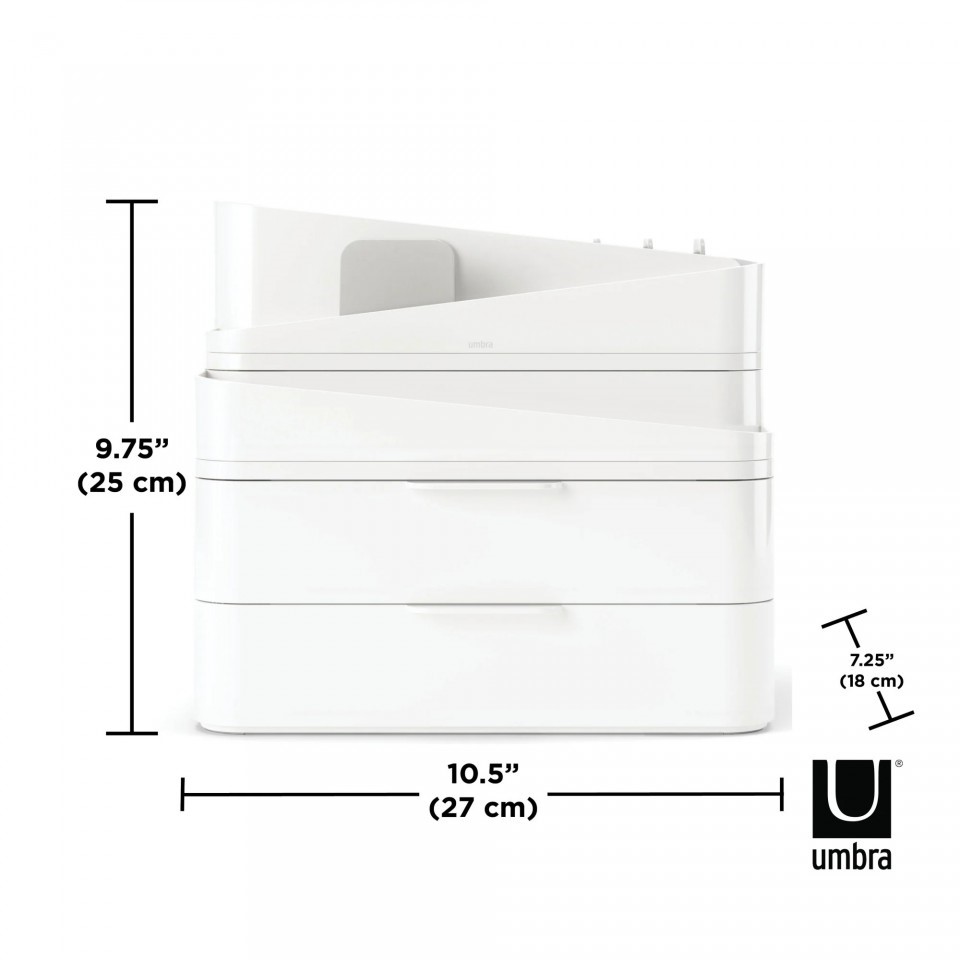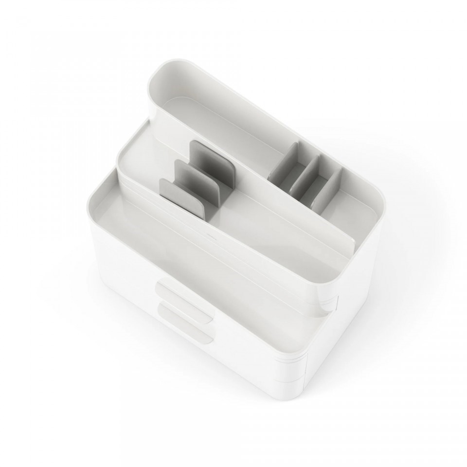 Organizer na kosmetyki GLAM LARGE w eleganckim odcieniu bieli, z zaokrąglonymi rogami, nie tylko doskonale uporządkuje Twoje kosmetyki, ale także będzie stylowym dodatkiem do Twojej łazienki czy toaletki. Organizer został zaprojektowany z myślą o funkcjonalności i nowoczesnym wzornictwie. Dzięki różnorodnym przegródkom, półkom czy szufladom, nasz organizer umożliwia przechowywanie kosmetyków o różnych rozmiarach i kształtach.