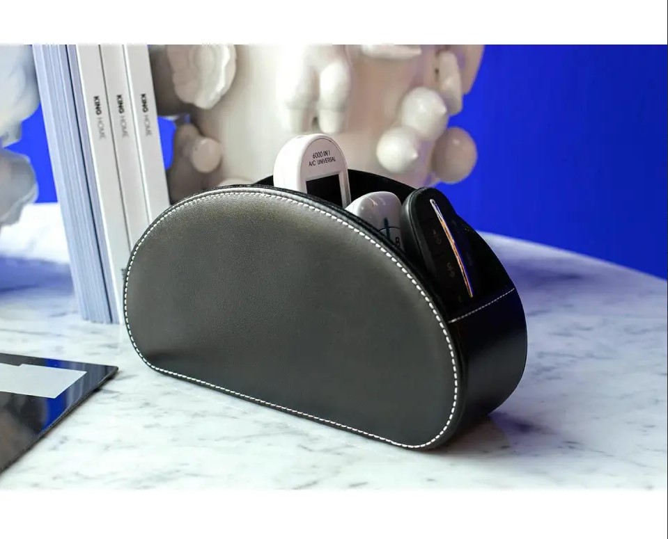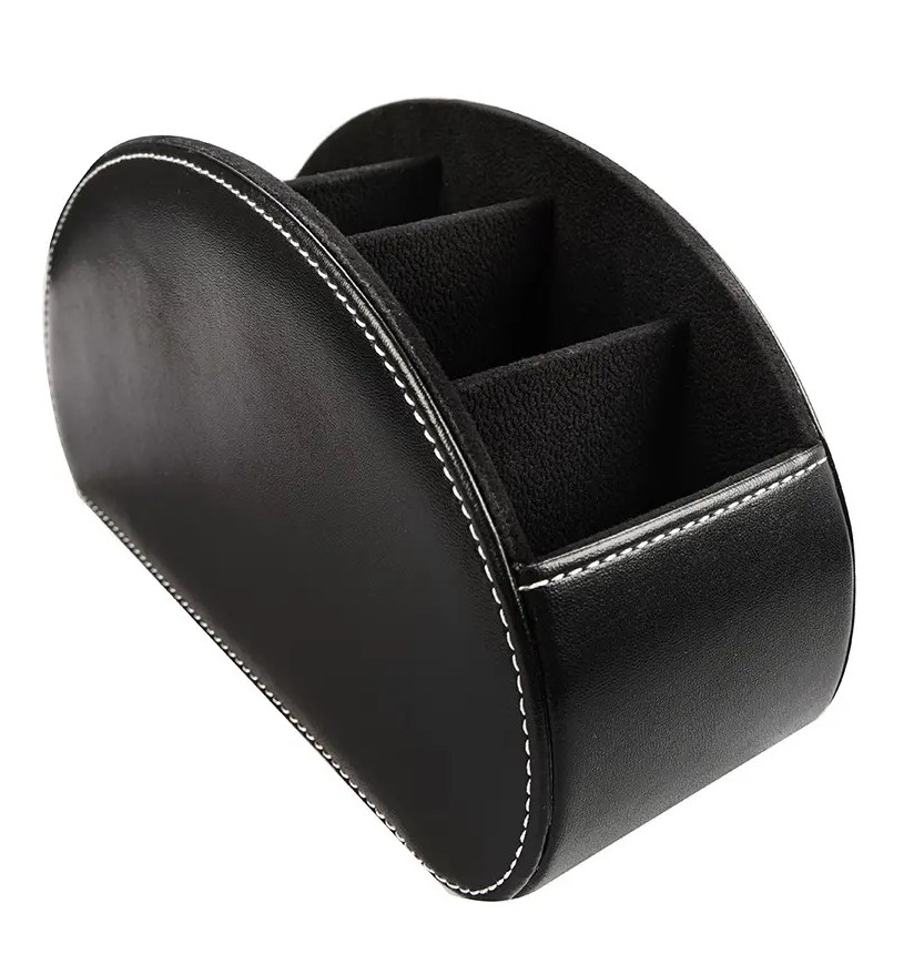 - Czarny skórzany organizer na piloty to elegancki i praktyczny sposób przechowywania wszystkich pilotów do telewizji, kina domowego oraz innych sprzętów elektronicznych.