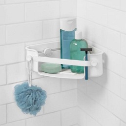 Półka narożna UMBRA FLEX biały korek. Zmaksymalizuj przestrzeń narożną pod prysznicem dzięki elastycznym półkom, aby uzyskać więcej miejsca i mieć ważne rzeczy pod ręką. Mocuje się go do ściany za pomocą przyssawek, dzięki czemu nie ma potrzeby wiercenia otworów ani dodatkowego niszczenia ściany.