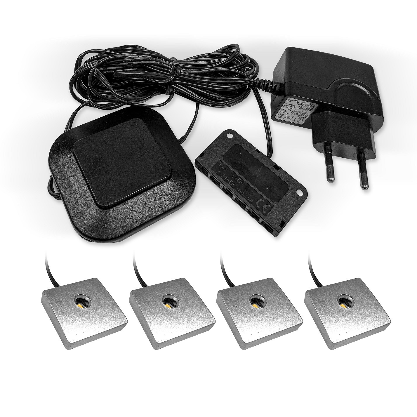 - Zestaw zawiera niezbędne elementy montażowe i przewody zasilające