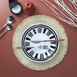 Naturalna podkładka pod talerz w stylu boho o średnicy 38 cm to elegancki i funkcjonalny dodatek do Twojego stołu. Wykonana z naturalnych materiałów, takich jak juta czy rattan, podkładka charakteryzuje się rustykalnym wyglądem, który doskonale komponuje się z różnymi aranżacjami wnętrz. Jej naturalny kolor i pleciona struktura dodają wnętrzu ciepła i przytulności.