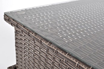 Podnoszony stolik ogrodowy "Malaga" w kolorze szarym to nowoczesne i funkcjonalne rozwiązanie do każdego ogrodu, tarasu czy balkonu. Wykonany z technorattanu, jest odporny na warunki atmosferyczne oraz łatwy w czyszczeniu. Jego unikalna funkcja podnoszenia pozwala dostosować wysokość blatu do indywidualnych potrzeb, co sprawia, że jest idealny zarówno do spożywania posiłków, jak i jako stolik kawowy.